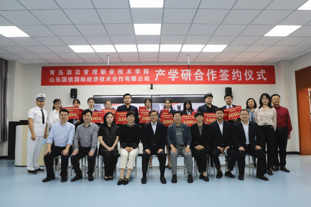 仪式上,酒店管理学院院长冷雪艳与山东国信国际经济技术合作有限公司董事柴雍光代表双方共同签署校企产学研合作协议。李颖新宣读了企业奖学金获奖名单,与会领导共同为9名企业奖学金获得者颁发了证书和奖金。一等奖学金获得者、20级国际邮轮乘务管理校企合作班张欣同学发言,表示将努力学好专业知识,练就专业技能,考取资格证书,成就登轮梦想。