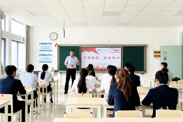 文旅学院学生党支部书记刘云飞为入党积极分子、预备党员讲授了“行稳致远,不忘初心”的党课,为学生们解答了“中国共产党为什么能,马克思主义为什么行,中国特色社会主义为什么好”。学生们纷纷表示,在青春奋斗的历程中,将始终不忘初心、牢记使命,行稳致远、进而有为,以实际行动书写青年担当。