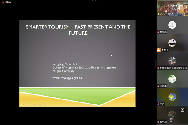 本网讯(文旅学院 杨安鸽)6月21日晚,文旅学院邀请国际旅行和旅游教育者协会(ISTTE)主席、美国尼亚加拉大学酒店与旅游管理学院终身教授周宗清博士,围绕“智慧旅游的过去、现在和未来(Smarter Tourism: Past, Present and the Future)”为师生们开展了线上专题讲座。
