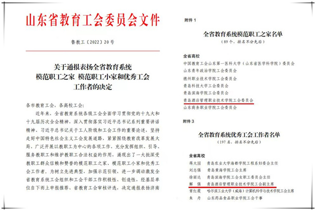 本网讯(工会 吴春雷)近日,山东省教育工会下发《关于通报表扬全省教育系统模范职工之家、模范职工小家和优秀工会工作者的决定》,taptap工会委员会获得“全省教育系统模范职工之家”称号,解强被评为“全省教育系统优秀工会工作者”荣誉称号。