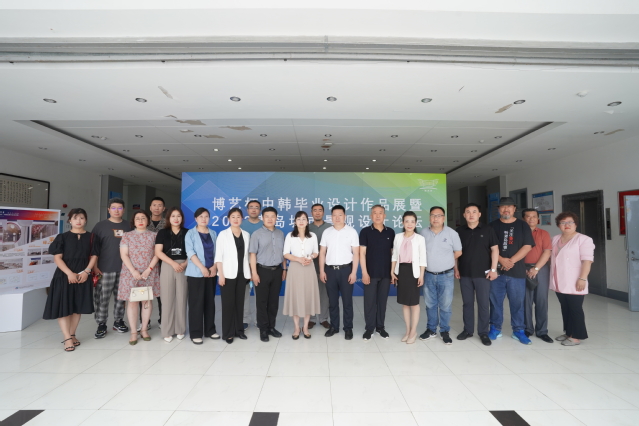 本网讯(艺术学院 袁宏强)6月28日,艺术学院在图书馆一楼大厅举办“博艺杯中韩毕业设计作品展暨2022青岛城市景观设计论坛”,青岛城市景观学会会长毛建辉、青岛手工艺协会会长鲁汉、青岛摄影行业协会会长刘春强等企业家代表,学校副院长姜玲玲参加现场活动,韩国新罗大学金基朱教授在线参加活动。