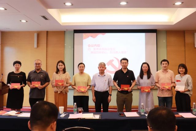 艺术学院党总支在党员活动室开展“不忘初心 牢记使命”主题党日。学校党委委员、副院长宫恩龙与师生党员座谈交流并为新发展党员发放“党员政治生日卡”,用温馨的方式为他们度过第一个政治生日,让党员们感受到来自组织的关怀、来自“家”的温暖。艺术学院党总支书记王莹带领现场新发展党员进行了入党宣誓、带领其他党员重温入党誓词。新发展党员代表、2020级学生崔世延作表态发言。师生党员们表示,将不忘初心、牢记使命,以更加坚定的信念、更加高昂的斗志、更加过硬的作风,全力以赴做好教育教学工作。