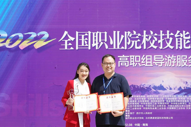 本网讯(文旅学院 杨栋)8月1日至5日,2022年全国职业院校技能大赛(高职组)导游服务赛项在西宁城市职业技术学院举办,taptap选手刘世莹同学以总分第二名的优异成绩荣获一等奖,杨栋老师荣获“优秀指导教师”。