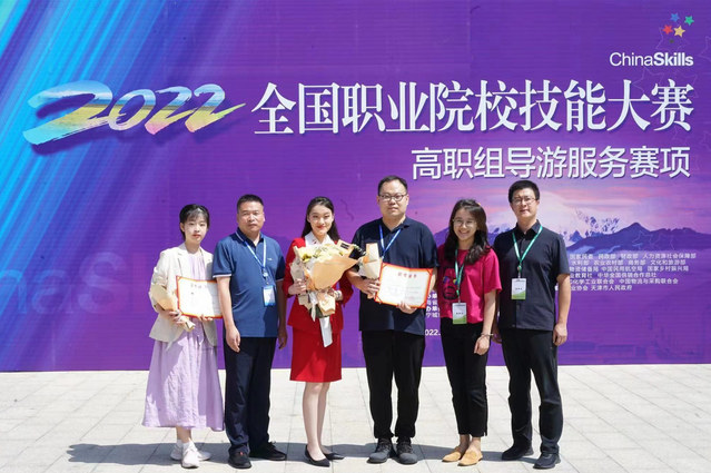 学校领导高度重视此次比赛,多次进行现场指导,并就技能训练提出了建设性指导意见。学校各职能部门针对训练参赛等工作给予了全力支持,有效保障了备赛、参赛工作的顺利进行。文旅学院不断深化“三教”改革,通过以赛促教、以赛促研、以赛促训,培养适应文旅产业数字化转型发展的复合型高素质旅游技术技能人才。本次大赛成绩的取得,展现了学校旅游管理专业“双高计划”建设成果,对推动旅游管理专业导游服务类课程教育教学改革和新型文旅技能型人才培养具有积极意义。