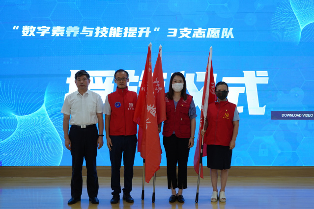 本网讯(艺术学院 邵常恩)8月25日,青岛市“2022年全民数字素养与技能提升”进社区活动在李沧区新时代文明实践中心举办,艺术学院志愿服务队被授旗为“数字素养与技能提升志愿者先锋队”,这也是由青岛市委网信办发起成立的三支先锋队之一。