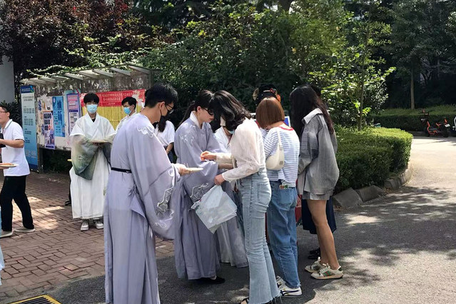 在东餐厅门口,身穿汉服的国学社学生为师生们准备了各式各样的月饼,让老师和异乡求学的学子们感受节日的气氛,领略中华传统美食的魅力。此外,基础教学部围绕“中秋特色”,突出文化主题,组织学生线上开展了经典美文诵读会、诗词赏析讲座等系列活动,借助“互联网+”,让中秋节变得更有“味道”,极大地点燃了学生对传统文化的热情。