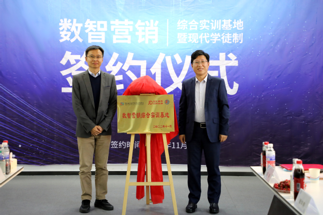 仪式上,张宗国介绍了学校特色及现代商贸物流专业群建设发展情况。他表示,本次签约是双方“基地共建、资源共享、人才共育”合作模式的具体举措,希望双方发挥现代学徒制作为职业教育新型技能人才培养模式的作用,携手建设具有辐射引领作用的高水平、专业化产教融合实训基地,培养德技兼修的高素质技术技能人才。张巍介绍了公司的发展历程及双方合作情况,表示将推进校企双方深度合作,共同培养数字营销高素质技术技能人才。