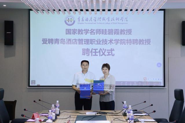仪式上,姜玉鹏、眭碧霞共同签署聘用协议,姜玉鹏为眭碧霞颁发特聘教授聘书。