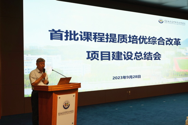 教务处处长于进亮作了首批综合改革课程建设工作总结,介绍了开展课程提质培优综合改革的背景、工作进程、具体措施、工作成效、主要问题及工作展望。