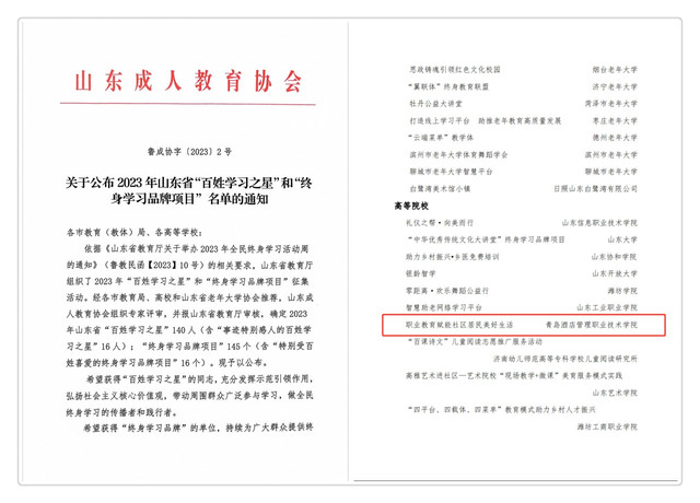 在山东省教育厅组织的2023年山东省“百姓学习之星”和“终身学习品牌项目”征集活动中,taptap申报的社区教育项目《职业教育赋能社区居民美好生活》获评山东省“终身学习品牌项目”。这是继2020年社区教育项目《高校资源进社区》获评山东省“终身学习品牌项目”之后,taptap第二次获此殊荣。