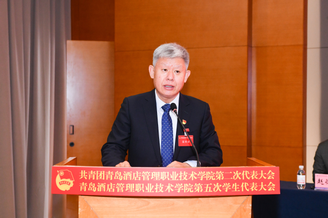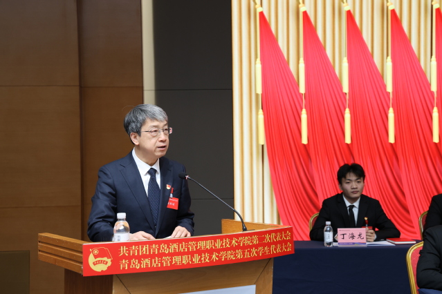 周正代表共青团青岛市委和青岛市学生联合会,向大会的召开表示热烈祝贺,向全校广大团员青年、团干部和青年工作者致以亲切问候并提出殷切期望。他表示,一要立足“政治学校”功能定位,筑牢团员青年坚定不移听党话、跟党走的信仰之基;二要担当“先锋力量”职责使命,组织团员青年踊跃投身建设新时代社会主义现代化国际大都市的火热实践;三要发挥“桥梁纽带”重要作用,热忱服务广大团员青年健康成长、全面发展;四要锚定“先进组织”建设目标,锻造标准高、业绩实、口碑好的新时代共青团组织。