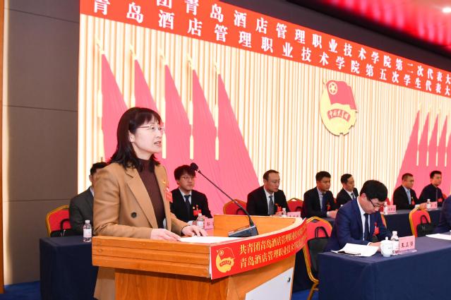 本网讯(团委 孙梦男)12月17日,共青团taptap点点官方网站第二次代表大会暨taptap点点官方网站第五次学生代表大会在学术报告厅顺利召开。青岛团市委书记周正,青岛团市委秘书长孙健,青岛团市委学少部部长、市学联秘书长赵伟,学校党委书记李达,党委委员、副校长、工会主席姜玲玲出席开幕式。党委委员、副校长宫恩龙主持大会并宣布开幕。