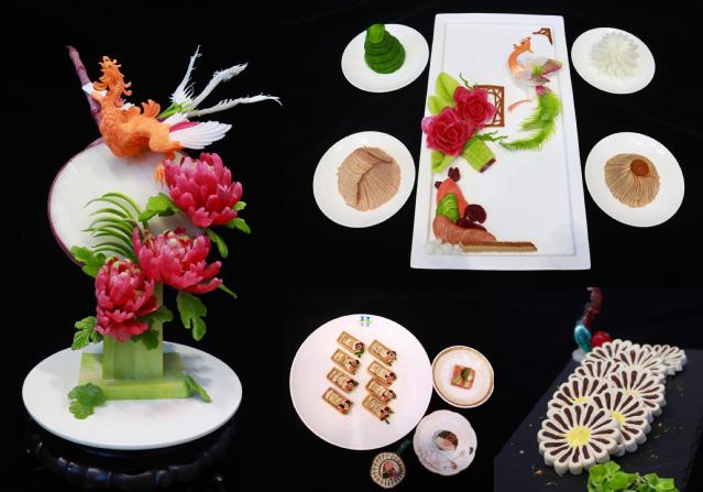 烹调工艺与营养、西餐工艺、中西面点工艺专业近150名学生以小组为单位,在项目组指导老师的带领下,充分发挥想象力和创造力,参照技能大赛制作标准,将工匠精神融入到宴席设计与制作中,通过中西式热菜制作、冷拼雕刻、糖艺制作、中西面点等形式,从外观形态、色泽香气、口味质感、装盘造型、精神内涵、营养科学等角度精心设计打磨,自行完成一桌主题宴席的设计与制作,集中展示了青年工匠后备人才有理想、敢担当、能吃苦、肯奋斗的青春风采。中国烹饪大师、学校职业技能鉴定所所长王振才等专家评委分别对宴席设计指导书、宴席现场讲解、展台摆放效果、菜点制作工艺等方面进行评判,最终评选出一等奖3个、二等奖5个、三等奖6个。