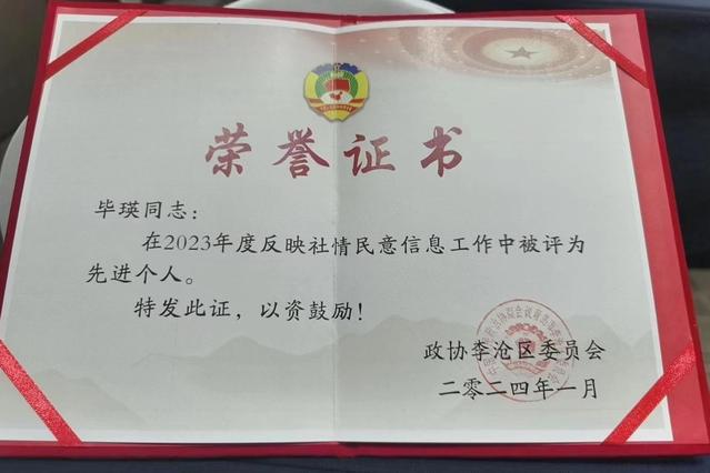 本网讯(党委统战部)1月10日,中国人民政治协商会议青岛市李沧区第七届委员会第三次会议闭幕。会议对优秀政协委员、先进个人进行了表彰,taptap区政协委员朱广丽荣获“优秀政协委员”,毕瑛荣获“2023年度反映社情民意先进个人”,秦炳海在民主党派无党派组作了发言。