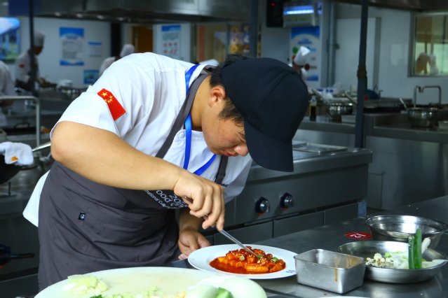 本次比赛分为个人展示赛和团体展示赛,来自中韩两国130多名参赛选手同场竞技。参赛选手需要使用指定韩式饺子、年糕、人参为食材或辅料,参照世界技能大赛制作标准,从文化内涵、色彩造型、口味质感、烹调技艺、营养搭配等角度精心设计打磨,自行完成2-3道菜品的制作。展示菜品摆放规范整齐、形式多样、风格各异,充分展现了参赛选手的专业水准和精湛技艺。