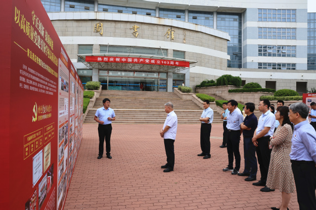 本网讯(组织人事处)为庆祝中国共产党成立103周年,扎实推进党纪学习教育,展示基层党建工作成效,7月1日,学校举办“守正创新 提质赋能”基层党建工作成果展。学校党委班子成员、各基层党组织负责人参观展览。