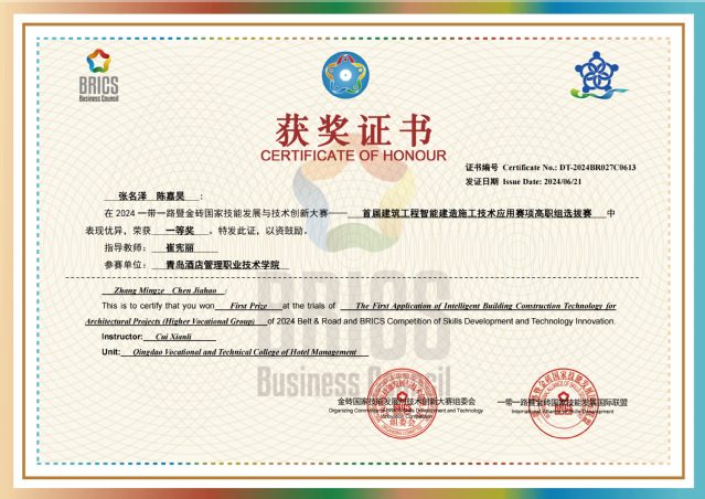 本网讯(酒店工程学院 崔宪丽)近日,2024一带一路暨金砖国家技能发展与技术创新大赛首届建筑工程智能建造施工技术应用赛项选拔赛结果公布,taptap学子荣获一等奖1项、三等奖1项。