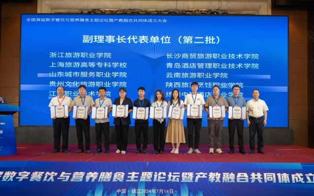 本网讯(烹饪学院 刘卜玮)7月14日,全国数字餐饮与营养膳食产教融合共同体成立大会在镇江举行,学校当选共同体副理事长单位。