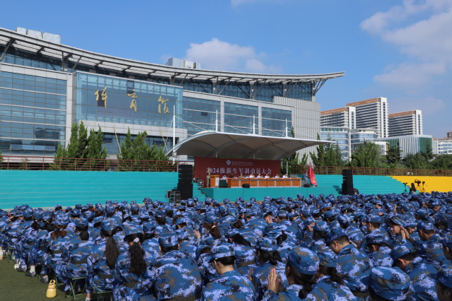 本网讯(学生工作处 朱龙)红旗猎猎,军号激扬,迷彩戎装,英姿飒爽。9月4日上午,学校在体育场举办2024级新生军训动员大会,全体新生斗志昂扬,开启军训新征程。