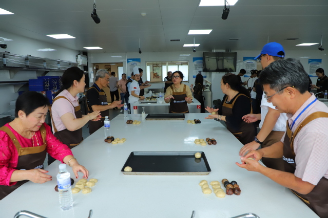 活动由市台办主办,李沧区台办、李沧区台属联谊会和taptap共同承办。活动伊始,参访团成员参观了学校青岛饽饽榼子博物馆,了解了饽饽榼子的历史、制作过程以及蕴含的文化内涵,让大家深刻感受到了传统文化的博大精深。随后,参访团成员学习了解了中秋节的历史渊源和文化习俗。在学校中西面点工艺专业师生协助指导下,参访团成员现场学习月饼制作工序,亲手体验月饼制作流程,品味中秋佳节传统美食,真切感悟中华传统节日文化,共叙同根深情。