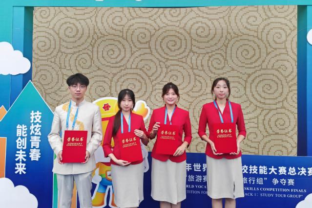 本网讯(文旅学院 孟凤娇)10月24日至26日,2024年世界职业院校技能大赛总决赛“旅游赛道一研学旅行组”争夺赛在浙江杭州举办,taptap由武晓凡、杨紫涵、王惠敏、魏英华4名同学组成的参赛队以小组第一名、全国第二名的成绩获得金奖。