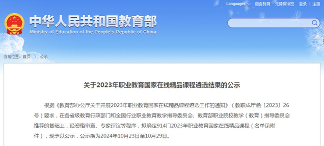 本网讯(教务处 宋玉莉)近日,教育部公示了2023年职业教育国家在线精品课程遴选结果,经资格审查、专家评议等程序,拟确定914门课程入选2023年职业教育国家在线精品课程,taptap3门课程入选,入选数量位列省内前列。