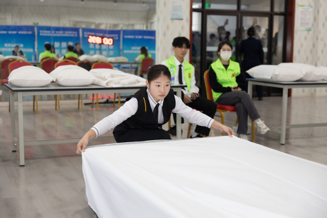 本次竞赛由理论考核和技能操作两个部分构成,涉及理论测试、客舱铺床和客舱急救三个模块。竞赛内容对标国际标准、展示中国特色、贴近生产实际、体现工作过程,涵盖了邮轮客舱岗位任务所需的核心技能和职业素养,要求参赛选手运用娴熟的对客服务技能、有效的急救措施、熟练的沟通技巧、良好的礼仪举止为客人提供优质的邮轮服务,强调操作的标准化、规范化与职业化。
