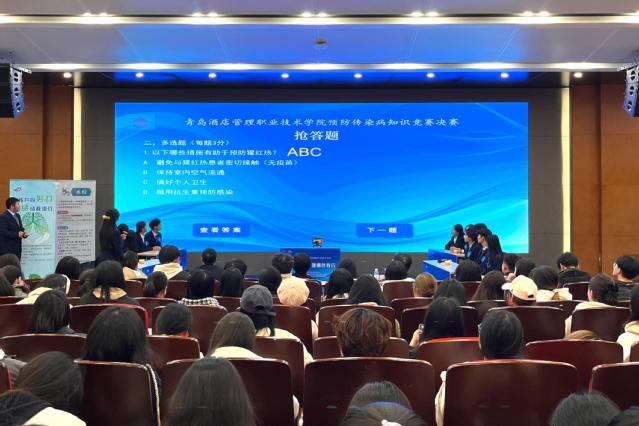 本次知识竞赛采用初赛、决赛制。经预赛初选,酒店管理学院、酒店工程学院、工商管理学院、会计学院四支代表队进入决赛。决赛内容围绕肺结核、艾滋病、水痘等多种秋冬季高发传染病的相关知识,通过主题演讲、必答题和抢答题三个环节检验大学生对传染病预防知识的掌握水平。决赛现场,参赛选手冷静思考、沉着应对、密切配合、踊跃竞答,赢得了现场观众的阵阵掌声。经过激烈角逐,工商管理学院健康智胜队荣获一等奖,会计学院益路同行会计护航队荣获二等奖,酒店管理学院深海探秘队、酒店工程学院健康护卫队荣获三等奖,酒店工程学院健康卫士队、文旅学院疫控先锋队、会计学院健康会计守护团、工商管理学院工商防疫锐志队荣获优秀奖。