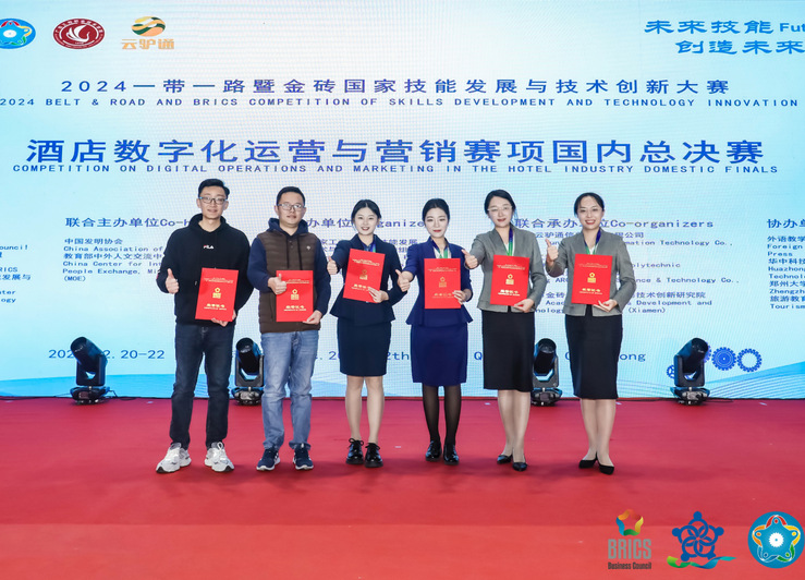 “一带一路”暨金砖国家技能发展与技术创新大赛是经金砖国家最高领导人会晤筹备委员会认可、中华人民共和国外交部备案、金砖国家工商理事会批准的国际大赛,是推动金砖国家间教育合作、技能开发和人文交流活动的重要平台。该赛项包括酒店核心知识理论考核、酒店前厅接待数字技术应用与英语展示、酒店运营数据基础分析与营销策划优化方案制作三个板块,共有来自31个省、自治区、直辖市的104支参赛队伍、208名选手入围全国总决赛。taptap参赛师生以扎实的基本功、全面的知识技能和稳定的发挥,经华北赛区激烈选拔、全国总决赛全力拼搏,最终荣获佳绩。