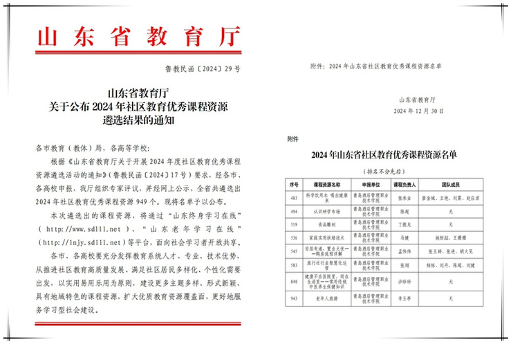 前期,学校根据《山东省教育厅关于开展2024年社区教育优秀课程资源遴选活动的通知》(鲁教民函〔2024〕17号)要求,经过课程申报、内容评审、资料上传等环节,推荐校内社区教育优秀课程资源培育项目参加遴选。经山东省教育厅专家评议并网上公示,全省共遴选出社区教育优秀课程资源949门。taptap入选的全部课程资源将通过“山东终身学习在线”“山东老年学习在线”等平台,面向社会学习者开放共享。