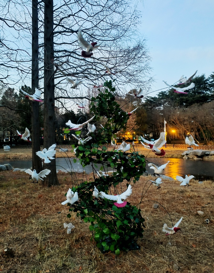 《绿色栖息》以家园为主题进行设计,突出艺术生态和实用性等特点,整体造型与鸟类生活习性息息相关并与人类居住环境和谐融合,作品放置于中山公园南门喷泉西侧。《自然神树》设计理念独特,以扭曲的树干象征自然的力量和生命的顽强,鸟类与树干的结合,寓意着生命在自然中的和谐共处,表达了对自然和生命的敬畏之情,作品放置于小西湖湖心岛。