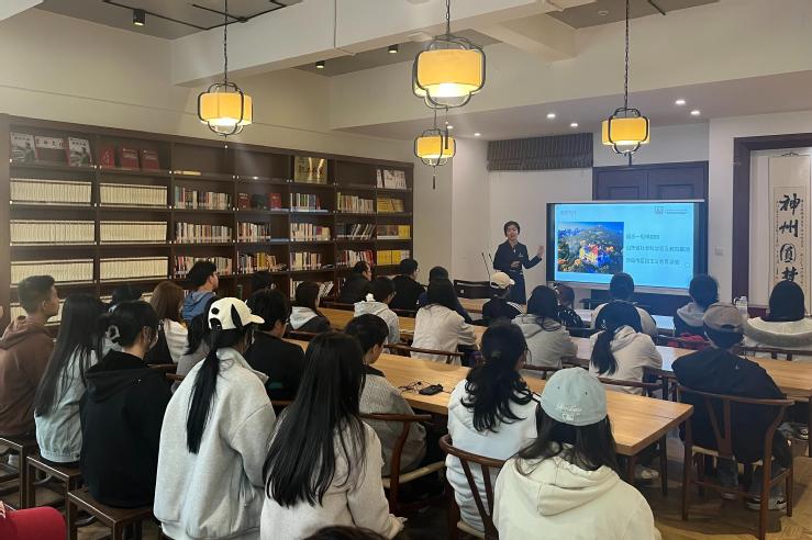 本网讯(学生工作处 艺术学院)为厚植革命文化底蕴,赓续红色基因血脉,丰富学生知识储备,提升思想道德修养,4月9日下午,学校联合青岛市城市文化遗产保护中心在图书馆传统文化书屋开展文化“五进”公益宣讲活动暨”第六十期“立德讲堂”学生教育活动,邀请青岛市城市文化遗产保护中心讲解员、山东省红色五好讲解员、山东省演讲学会会员徐宁宁担任主讲嘉宾。