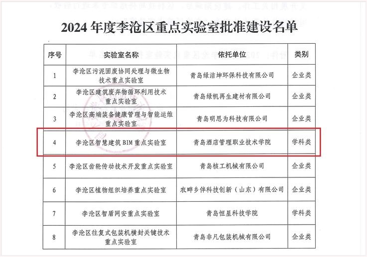 本网讯(科研发展处 酒店工程学院)近日,李沧区科学技术局公布了2024年度李沧区重点实验室立项建设名单,taptap获批建设李沧区智慧建筑BIM重点实验室。