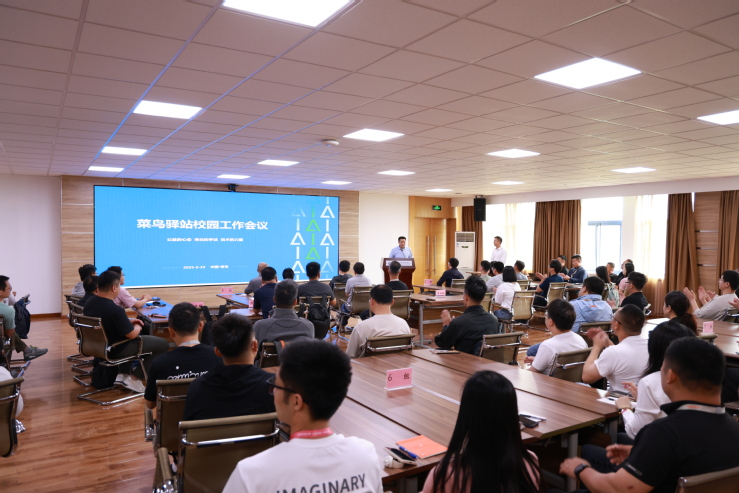 熊健在讲话中表示,学校菜鸟驿站是全国第一个以产教融合、校企共建生产型实训基地模式打造的菜鸟驿站,并已经建成为全国示范性标杆驿站,经过多年探索,形成了一套独特的院校与菜鸟的产教合作模式,希望未来校企双方能加强沟通、深化合作,在教育及产业赛道实现更多产出。