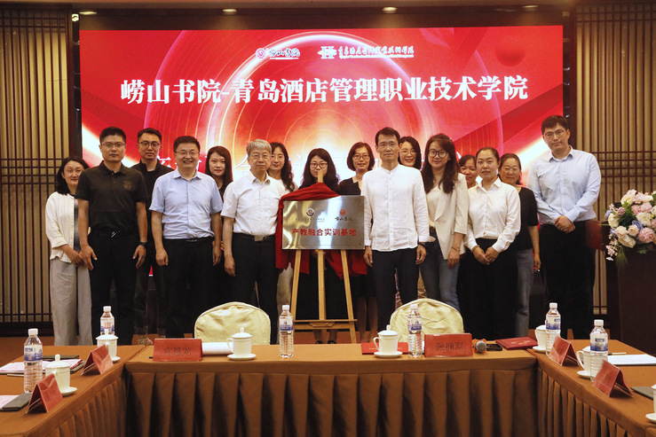 随后,双方签署战略合作协议,揭牌“崂山书院实践教学基地”,颁发学校客座教授聘书,并为企业实践教学指导教师、文旅产品研发特聘研究员颁发证书。