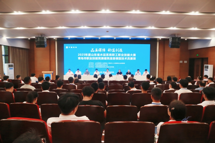 本网讯(酒店工程学院)8月19日,2025年度山东省水运系统职工职业技能大赛水上工程建筑信息模型(BIM)技术员赛项与青岛市职业技能竞赛建筑信息模型(BIM)技术员赛项在taptap举行。青岛市人力资源和社会保障局二级巡视员黄同华,山东省海员工会主席吴玉川,中建港航局党委副书记、董事、工会主席郭导,青岛市人力资源和社会保障局职业能力建设处处长杨志强,学校党委副书记韩西清等参加启动仪式。