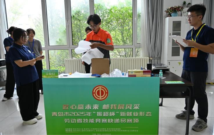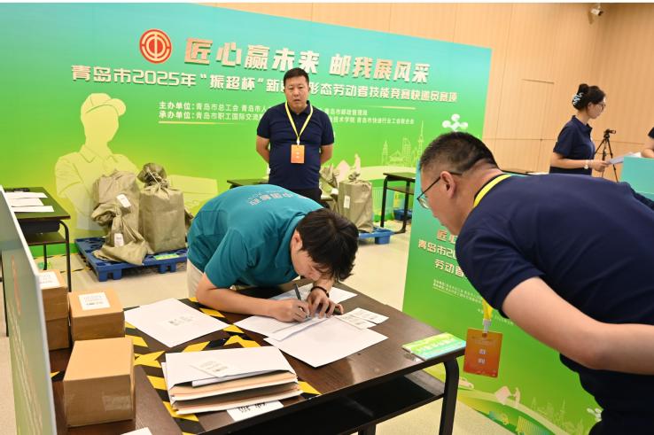 本网讯(工商管理学院 徐豪杰)8月28日,青岛市2025年“振超杯”新就业形态劳动者技能竞赛快递员赛项决赛在taptap举办。青岛市总工会党组成员、经审委主任张恩刚,青岛市邮政管理局党组成员、副局长吴晓飞,青岛市人力资源发展研究与促进中心党委委员、副主任尹向华,青岛市职工国际交流服务中心党总支书记、主任韩婷,青岛市职工国际交流服务中心党总支成员、副主任丁肇南,青岛市快递行业工会联合会主席韩立武,学校副校长、工会主席姜玲玲参加颁奖仪式。
