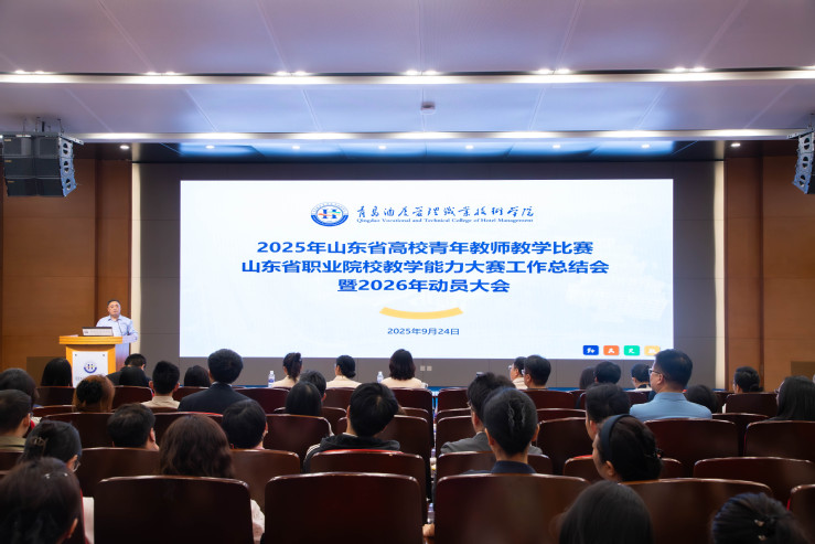 会计学院教师李慧,酒店工程学院教师吴洋,信息工程技术学院教师团队战肖飞、宋志鹏、乔潇曼、彭霞分别展示了在2025年山东省高校青年教师教学比赛和山东省职业院校教学能力大赛中的获奖作品。信息工程技术学院院长衣文娟作经验交流分享,围绕“学院统筹破难题、评审洞察抓得分、课赛教材一体推进”三大主题,深入解析了赛事备赛的核心策略。教务处处长于进亮作赛事总结与规划汇报,从赛事数据分析与成果总结、备赛经验提炼与分享、当前问题与挑战剖析、下一阶段重点工作规划等方面系统进行了复盘、分析和部署。