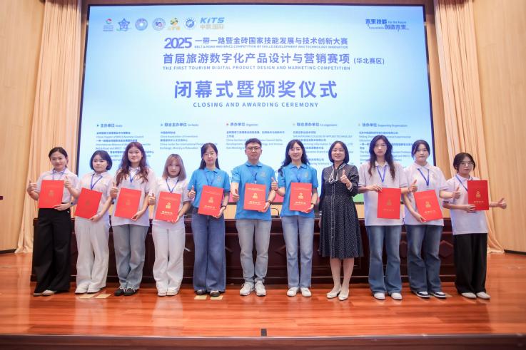 本网讯(文旅学院 巩玉玲)9月22日至24日,2025“一带一路”暨金砖国家技能发展与技术创新大赛首届旅游数字化产品设计与营销赛项(华北赛区)顺利举行。taptap文旅学院刘晓倩、刘晓宇、孙乐雨、王一涵四位同学获得区域赛一等奖,王庆楠、马子杰、李因芝三位同学获得区域赛三等奖,田超、杨安鸽、高雪三位老师获得区域赛教师组二等奖;学生组和教师组均晋级全国总决赛。