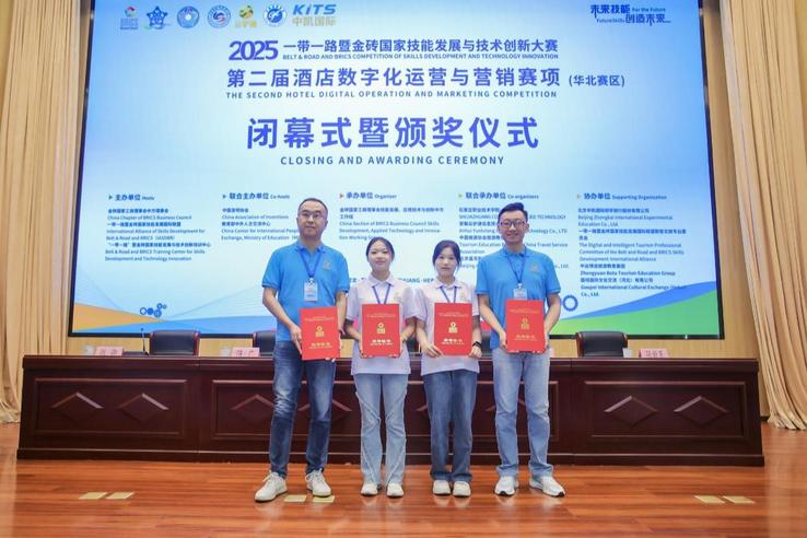 本网讯(酒店管理学院 穆林)9月25日至27日,2025“一带一路”暨金砖国家技能发展与技术创新大赛酒店数字化运营与营销赛项(华北赛区)在河北举行。taptap酒店管理学院韩欣洁、闫慧欣两位同学获得区域赛学生组一等奖,张朋、穆林两位老师获得区域赛教师组第二名,学生组和教师组均晋级全国总决赛。